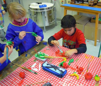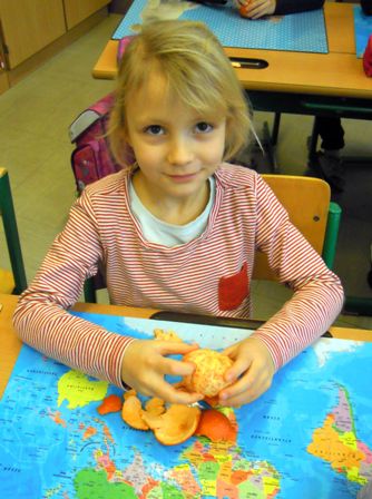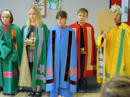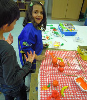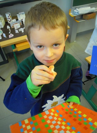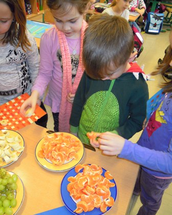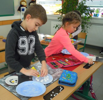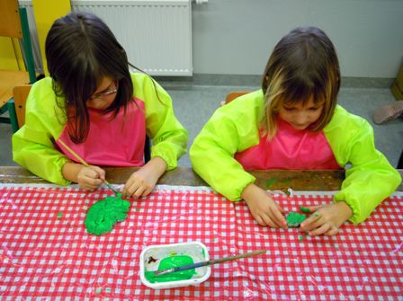 Die 1.Klasse zeigt die Geschichte von der "Kleinen Raupe Nimmersatt". |