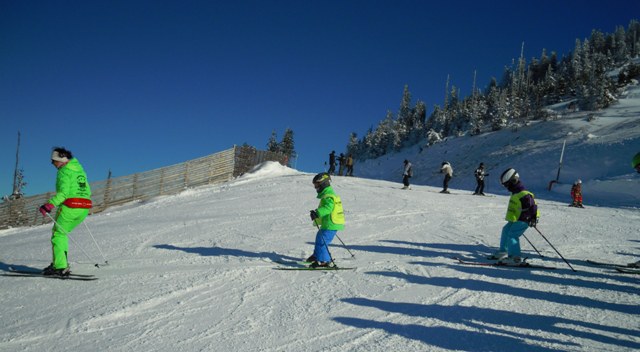Die Kleinen beginnen. - Für Absdorf startet Jonas Meyer (1.Kl.) als Nr.100 in Dunkelgrün. |